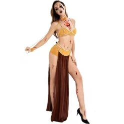 Slave Leia Bikini Princess Gold Leia Bikini Outfit Women Halloween Costume.