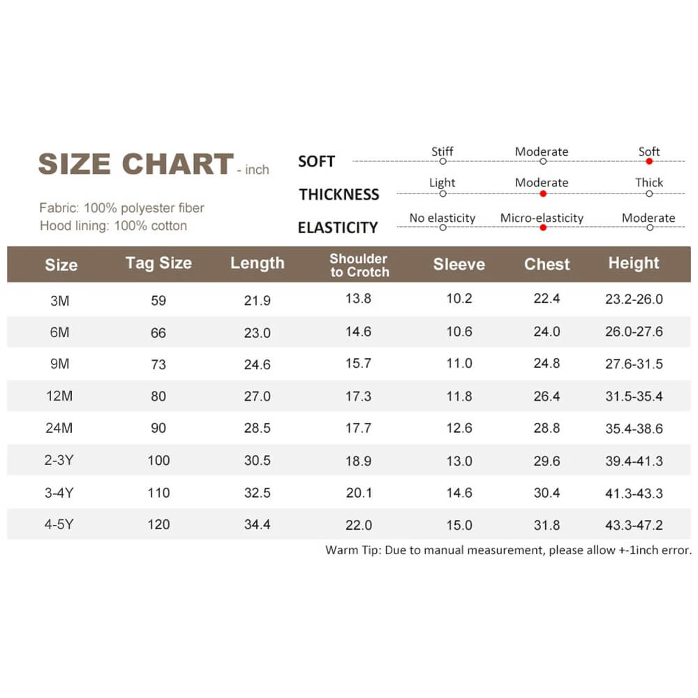 - Zipper closure, easy to put on and take off. Hooded design, not only cute, soft and warm, but also protects the baby’s head.Â