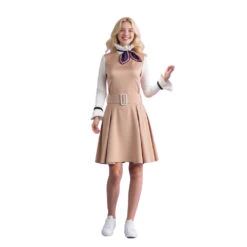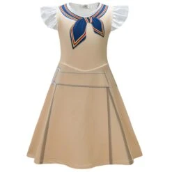 Girls Megan Costume Killer Robot Khaki Pleated Sleeveless Dress With Shirt Belt Scarf Full Set