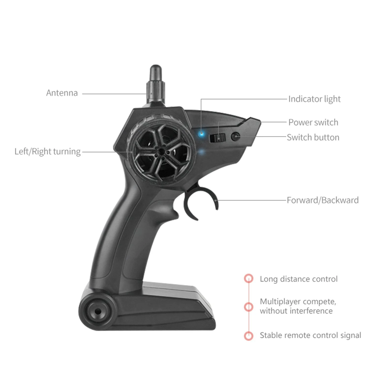 - Low battery reminder-the light of the controller will blink to remind you charge in time.