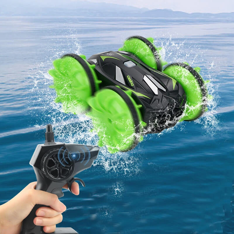 - Four wheel gear makes the RC Car boat flexible to do amazing 180 degree flipping and 360 degree rotation.