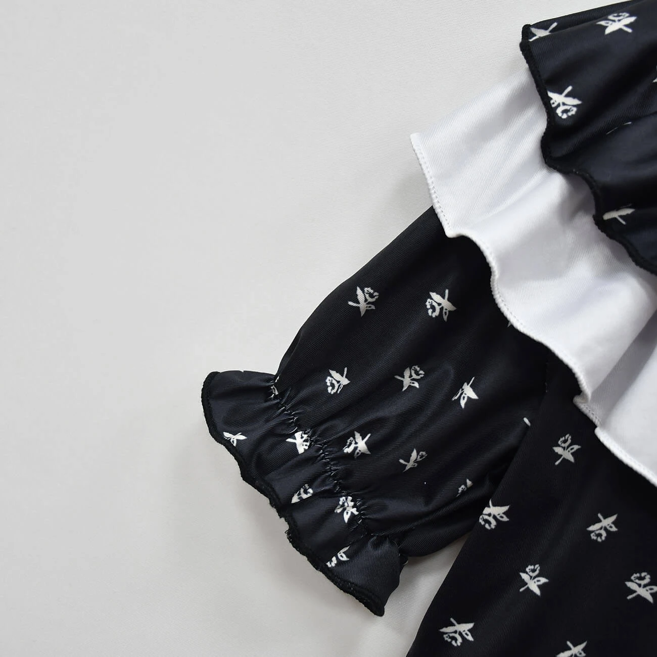 - The black and white color matching collar helps provide a contrasting and distinctive look. High waisted design with white tiny flower and puff sleeves give a hint of fashionable appeal. Only a summary on back collar, it is hollow-out design, no zippers, easy to put on and take off.