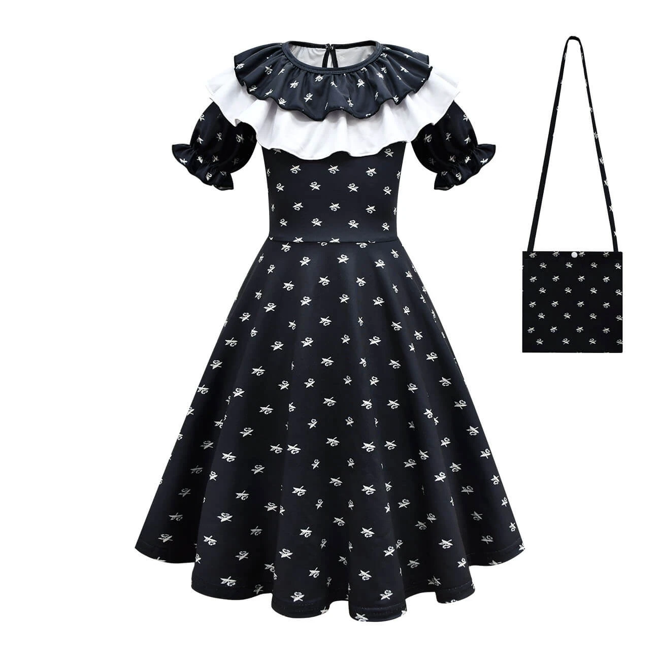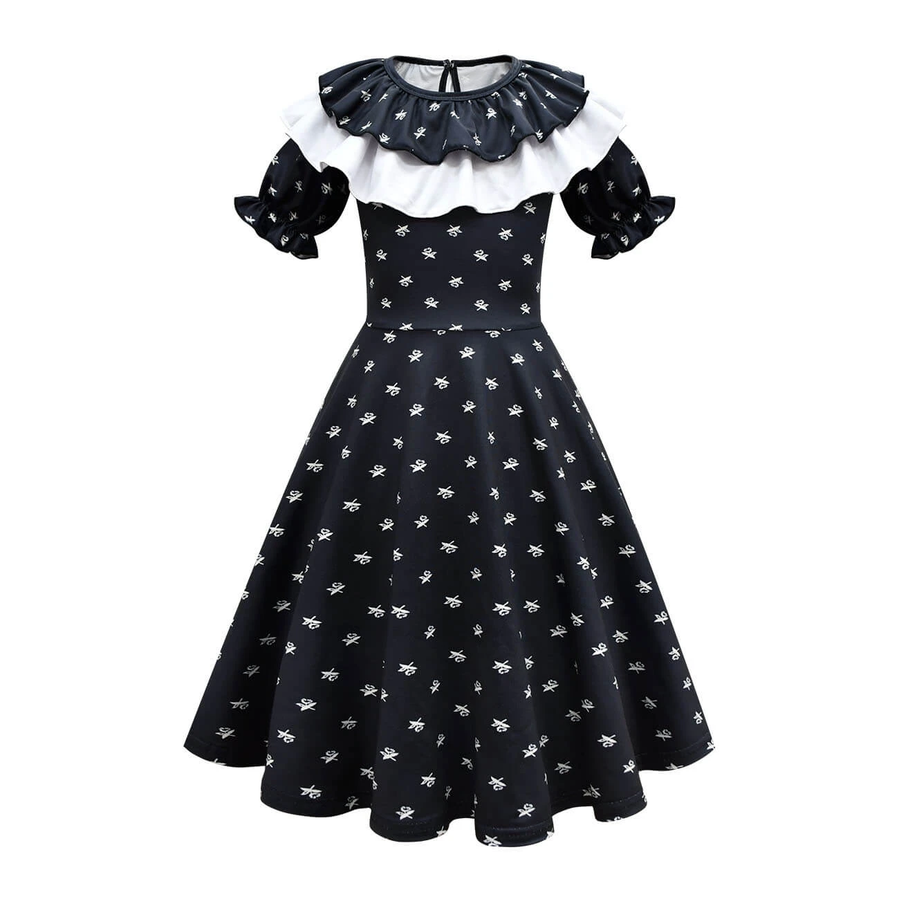 - The Wednesday dress is quite classic in black with ruffled collar and beautiful hem. It is not just a Halloween costume but a nice dress for girls daily wear.