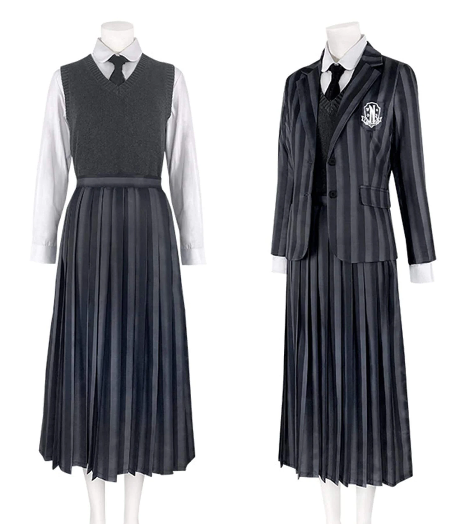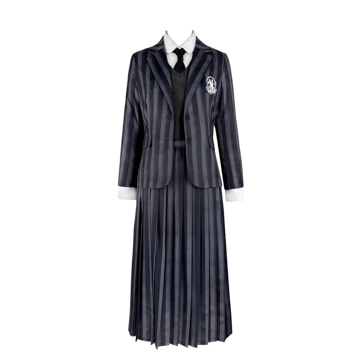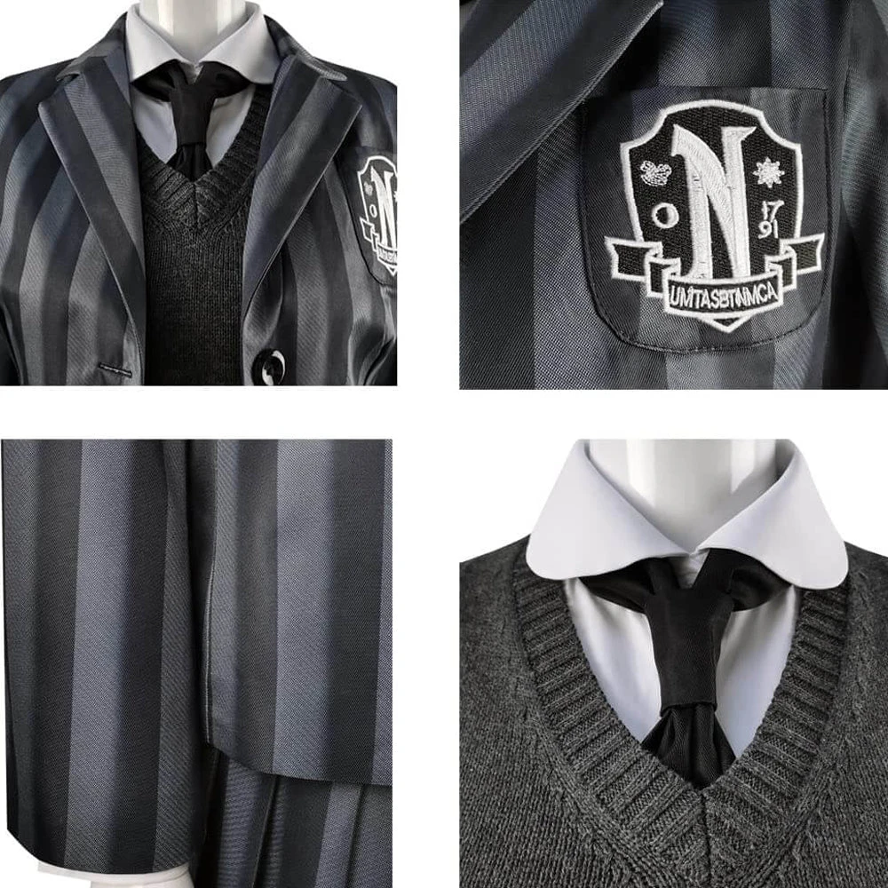 - Stripes Wednesday school uniform suit highlight the youth and vitality. Badges on chest pocket highly restores the figure of students in Nevermore Academy.
